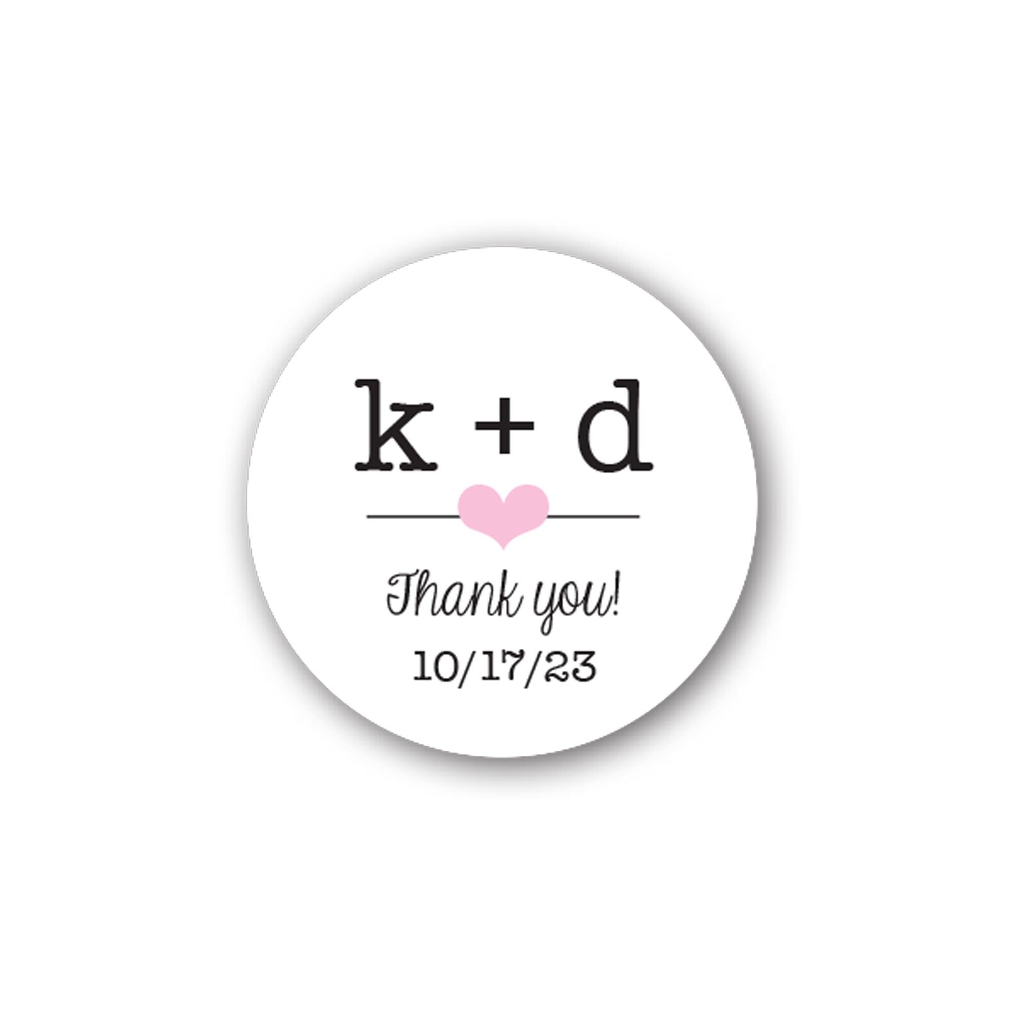 1" inch Glossy Round Sticker Mini Labels - Custom Wedding Favor & Gift Tags - Typewriter Heart Initials