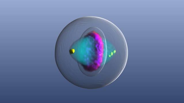 Cell Model School Craft Project - Woo! Jr. Kids Activities Start by putting a bit of play dough in the center of the flat side of the large ball and place the small ball on top of it. The play dough acts like a glue to keep the pieces together. Then start covering the small half ball (the cell nucleus) with one color and then the area around it with a different color. Creating the Cell Model Nucleus.